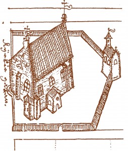 Vanha tuomiokirkko Anders Torstennssonin kaupunkisuunnitelmassa vuodelta 1642.