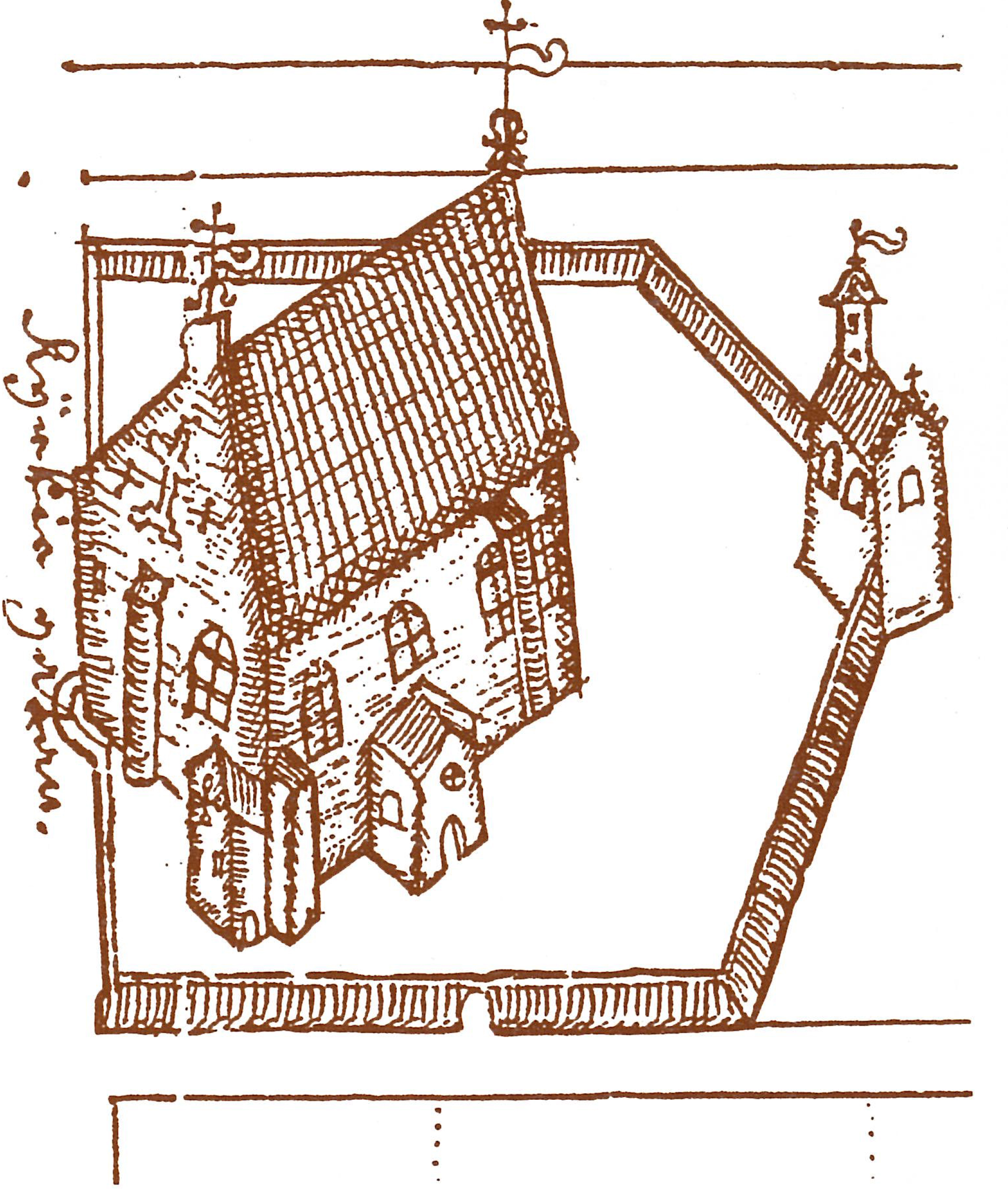 Kirkon rakennusvaiheet. Piirros: Panu Savolainen.